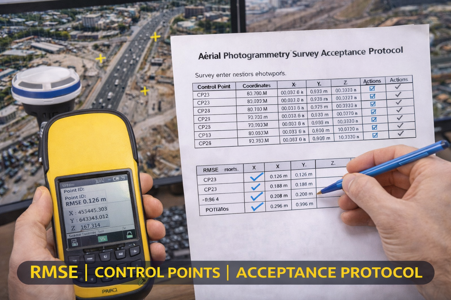 Контроль качества аэрофотосъёмки: RMSE, контрольные точки, протокол приёмки
